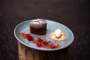 Čokoládový fondán s omáčkou z lesních plodů, vanilková zmrzlina - TX Hotel